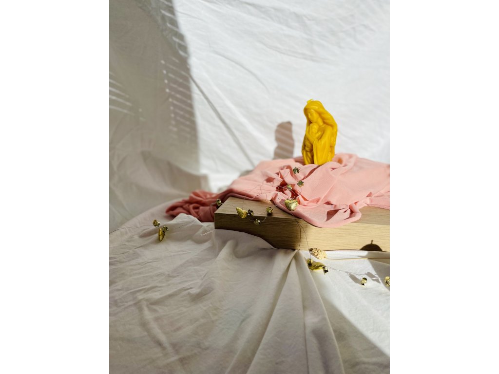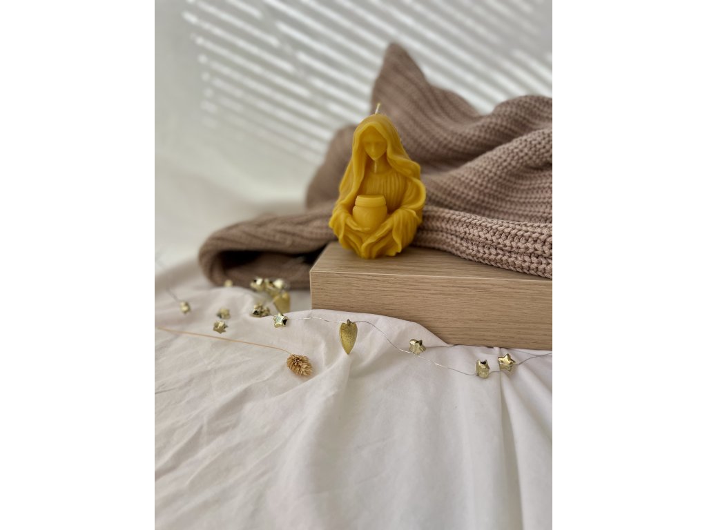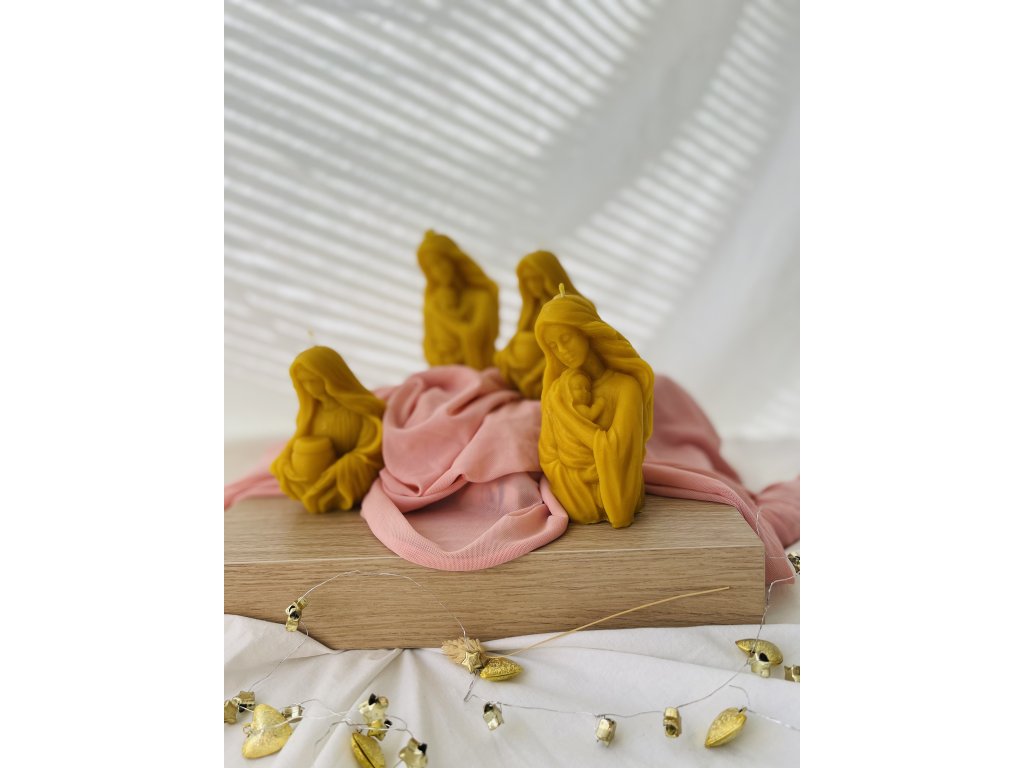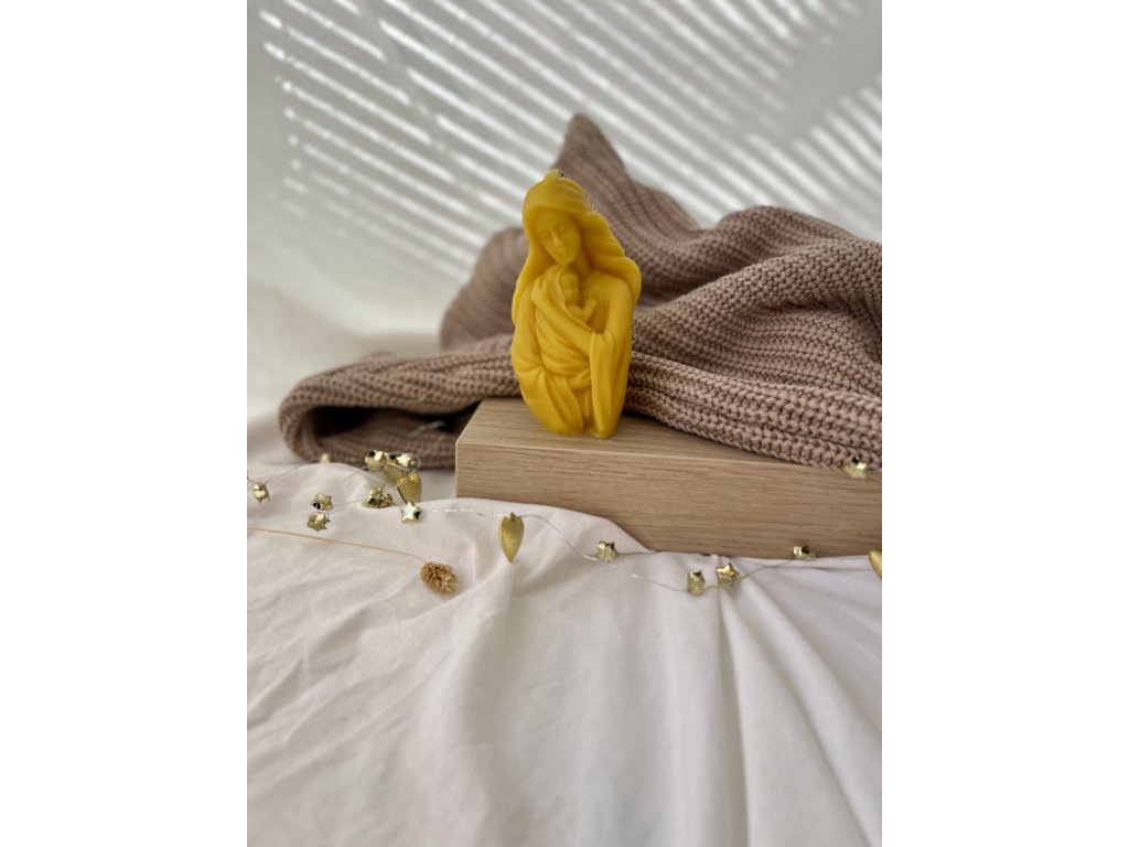 Krásna sviečka z čistého včelieho vosku s motívom Panny Márie s dieťaťom alebo kalichom je symbolom pokoja, lásky a duchovného svetla. Vďaka svojmu precíznemu spracovaniu a jemnému zlatistému odtieňu vosku pôsobí dôstojne a elegantne, pričom sa stáva nádhernou dekoráciou aj duchovným darom.
